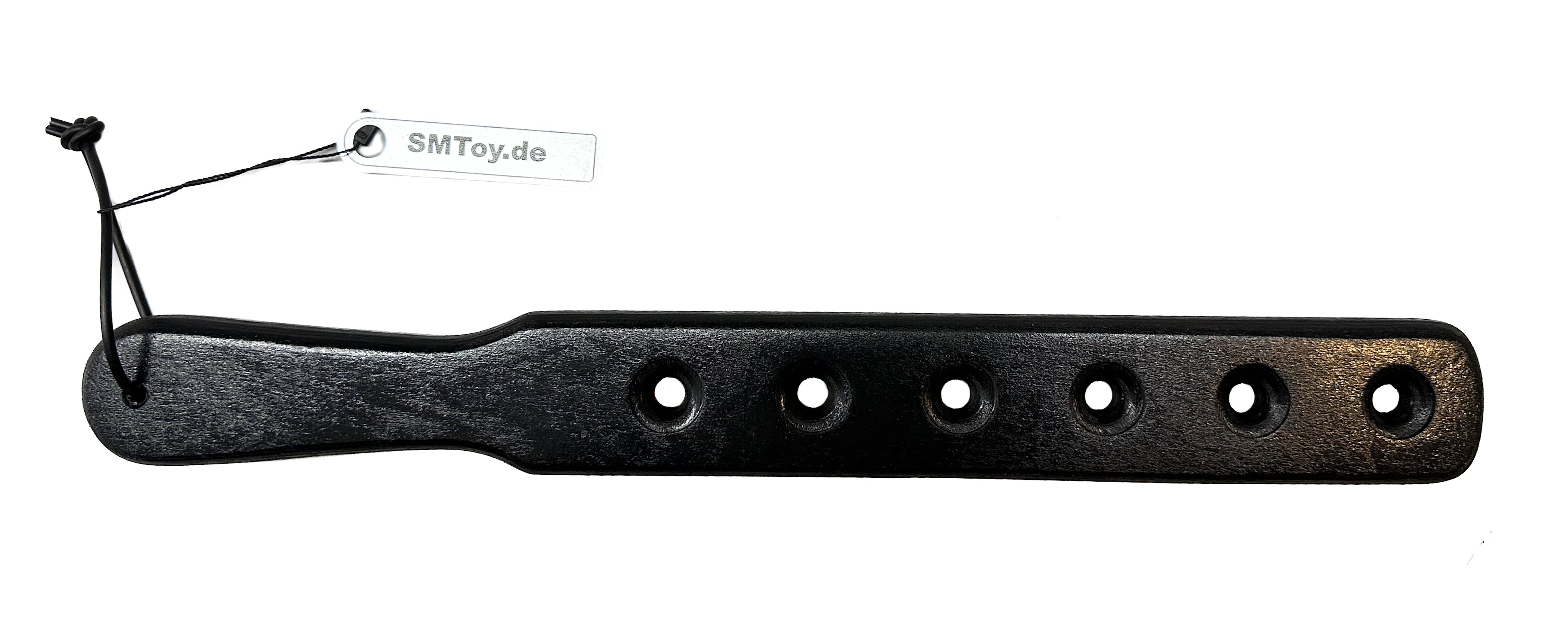 Paddle aus schwarz lackiertem, leicht angerautem Holz (Multiplex)