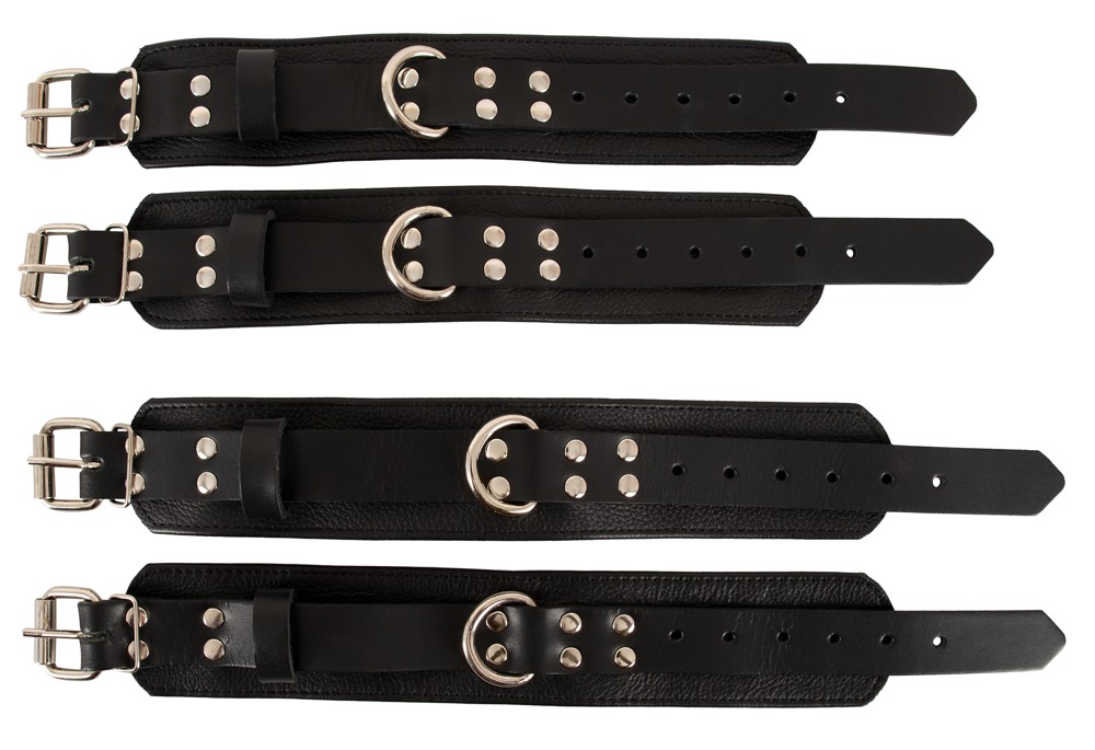 • Set: H-Gurtsystem & 4 Fesselmanschetten aus Leder