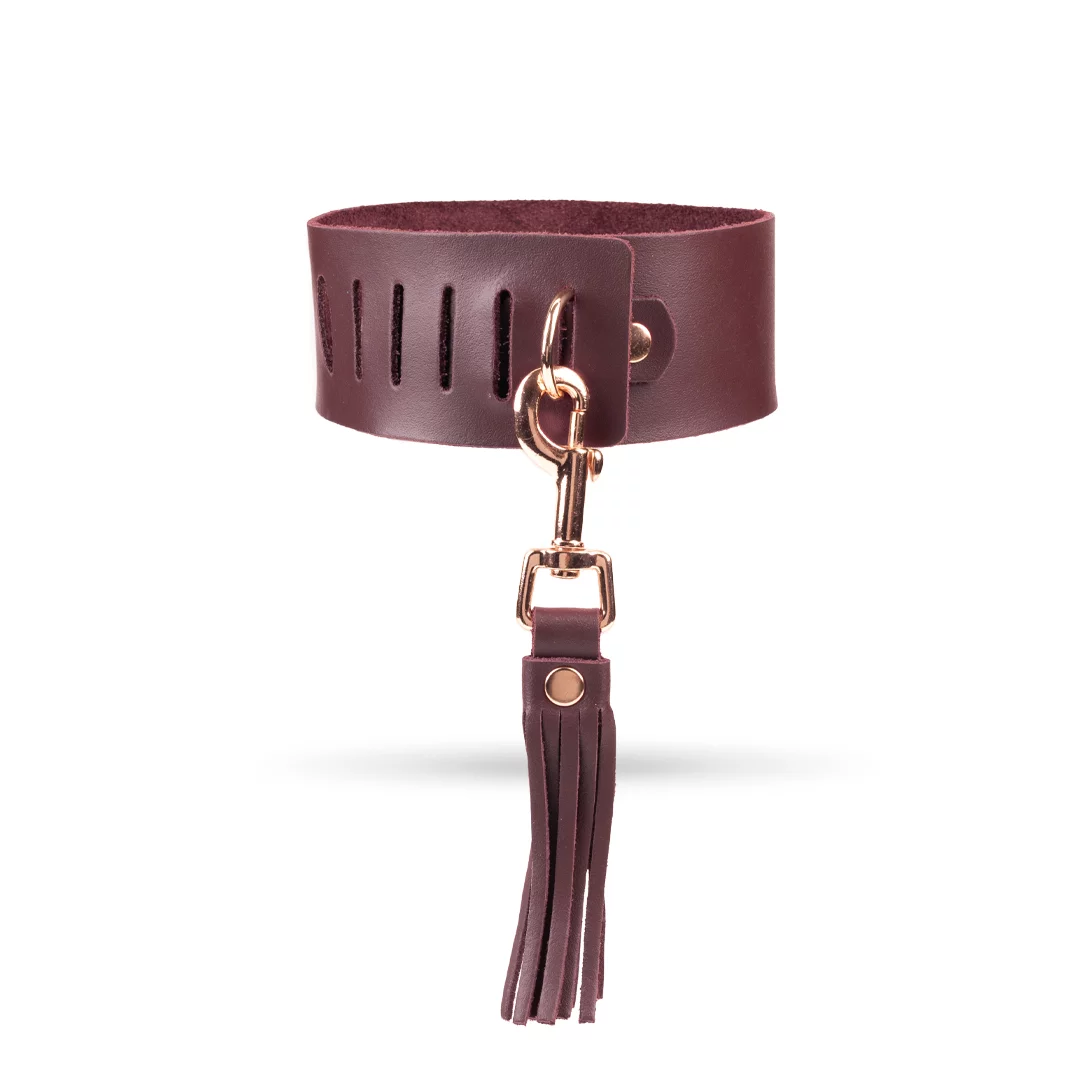 Lederhalsband mit Peitsche Burgundy / Roségold
