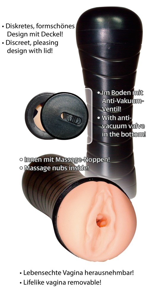 ... für den scharfen Solo-Quickie zwischendurch und unterwegs! In der diskreten, schwarzen Design-Dose verbirgt sich unter dem formschönen Deckel eine lebensechte Verwöhn-Muschi mit dicken Massage-Noppen innen.
