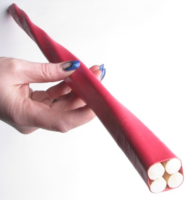 Drei eng gebündelte Rohrstöcke, mit flexiblem Gummi überzogen, entfalten bei jedem Schlag ein unverwechselbares Spiel aus Präzision und Intensität.