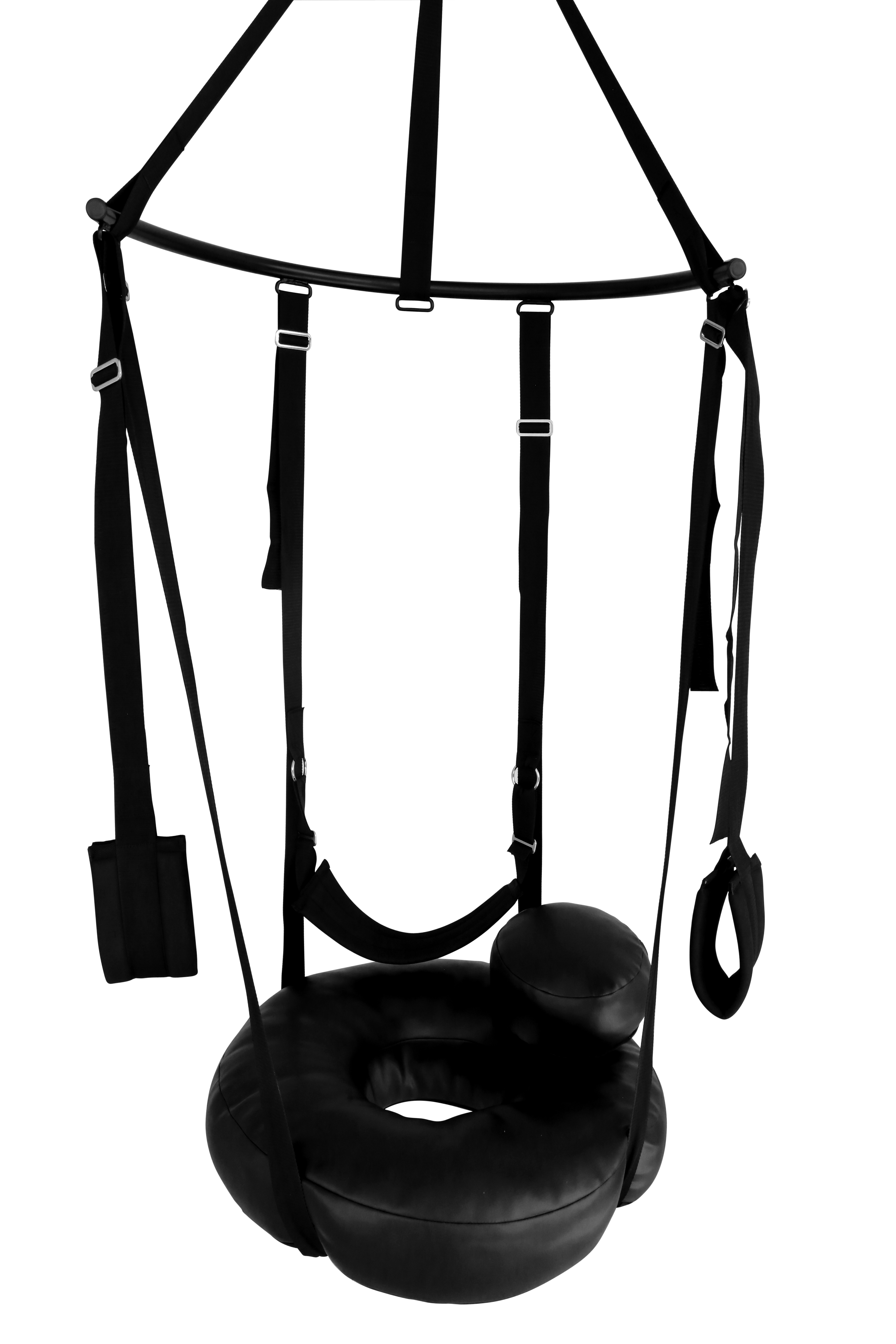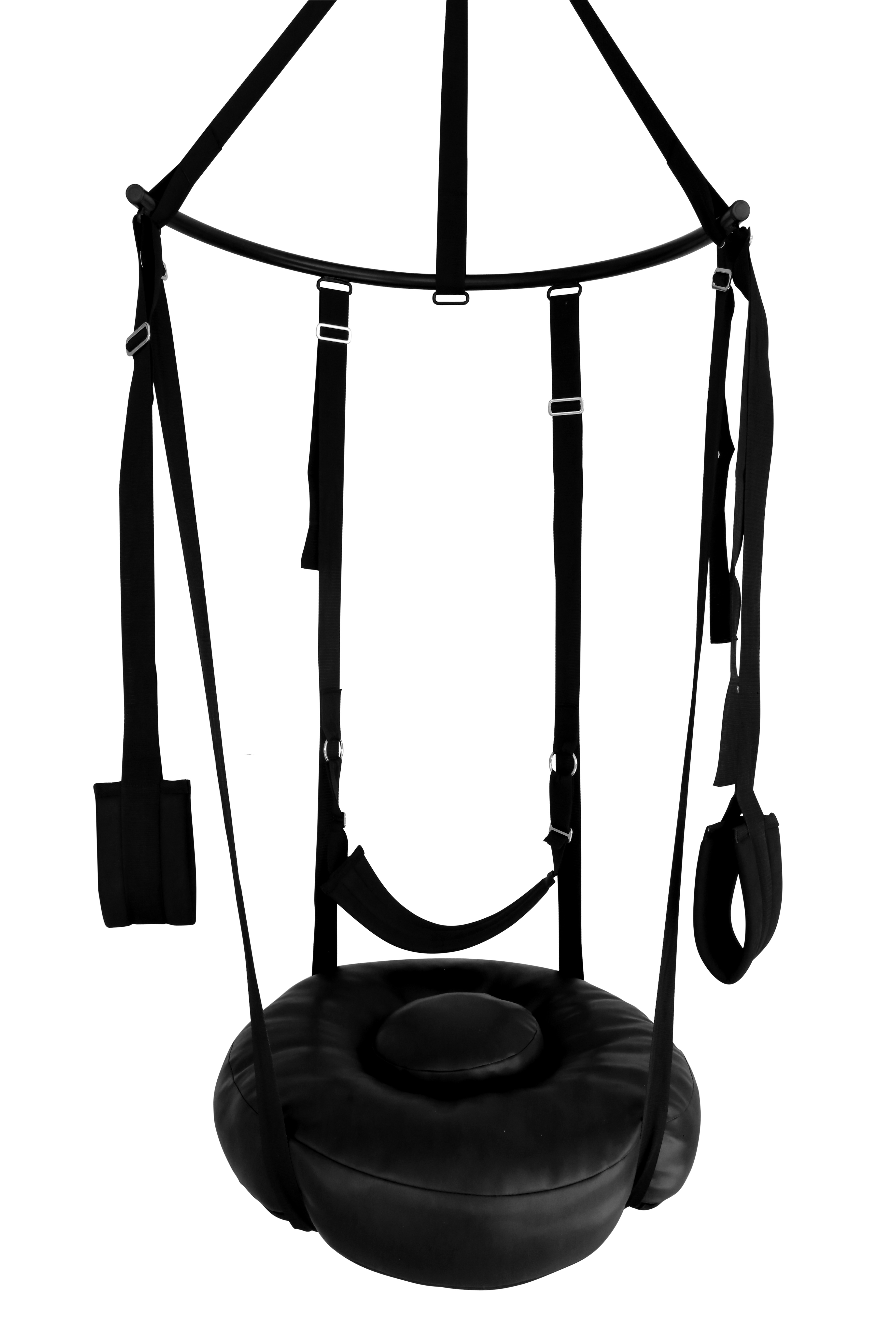 The 4 adjustable belts which hold the Sex DONUT are safely attached to the semi-circular metal bar,