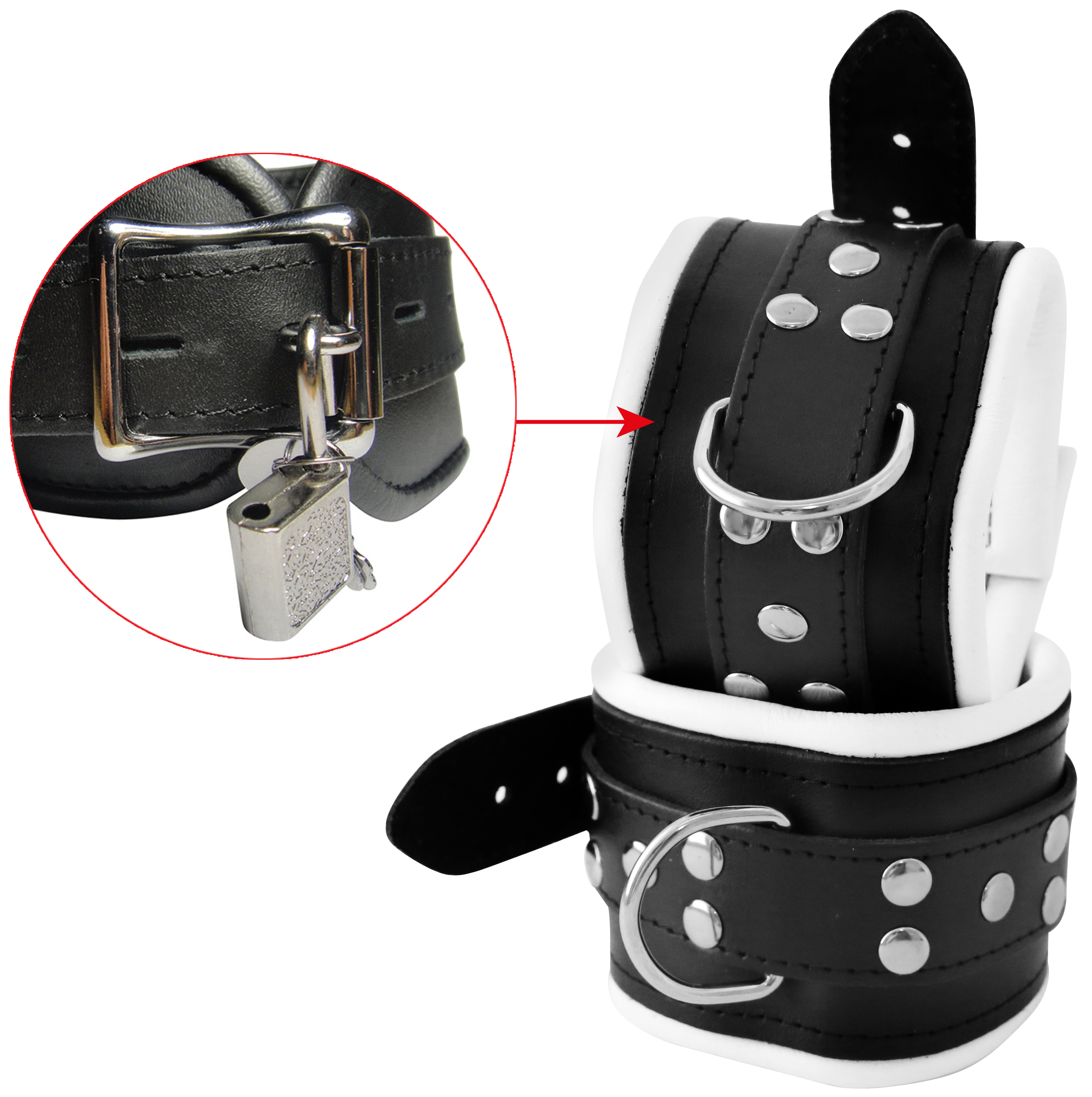 Leder Fußfessel weiß ca. 8 cm breit gepolstert abschließbar.
